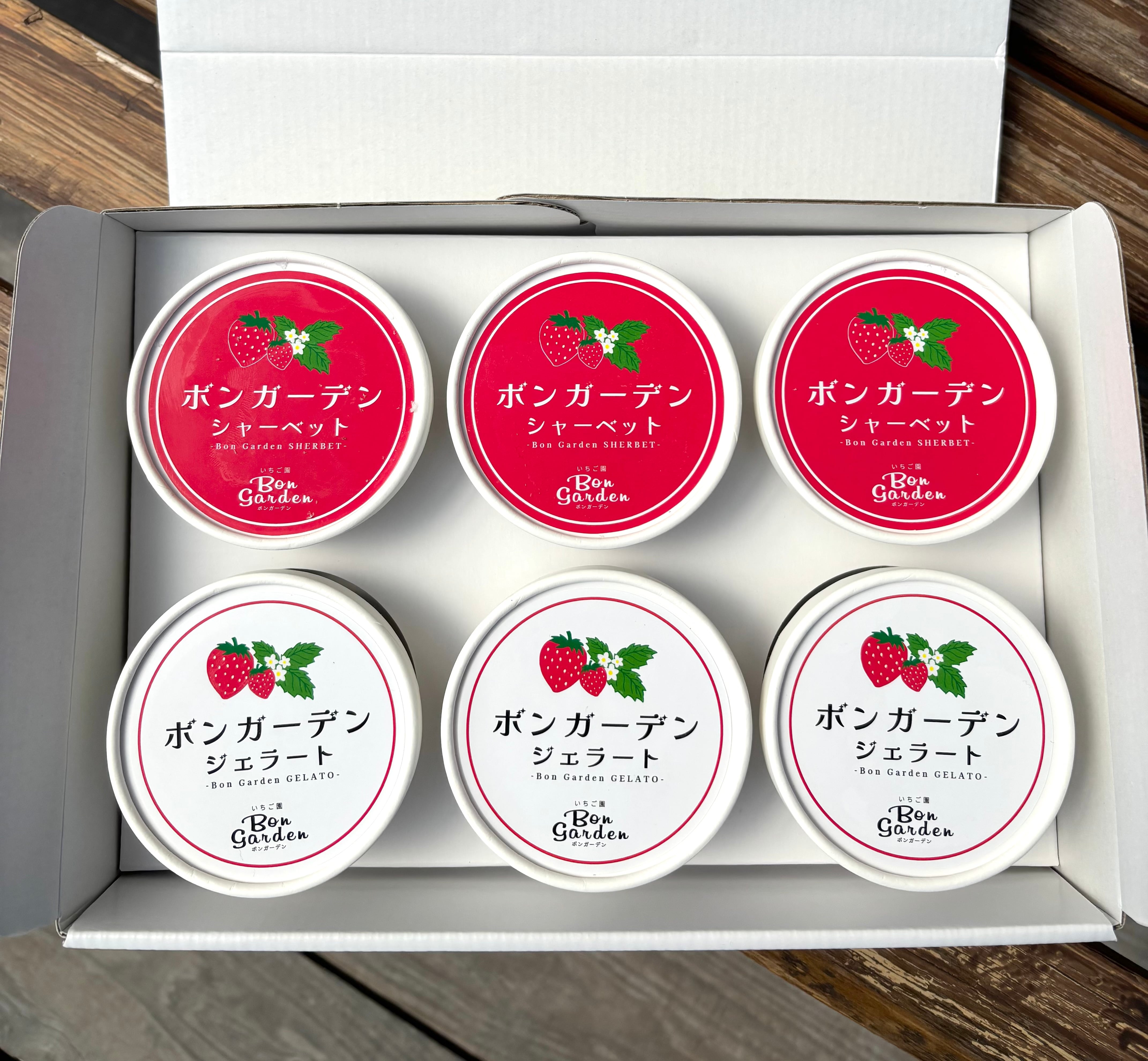 ボンガーデンのいちごを贅沢に使用した、ジェラート&シャーベットの詰め合わせ6個セットです。